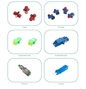 Passive Products: quick connector spare parts, fiber optic jumper spare parts, adapters, etc. Compliant with...